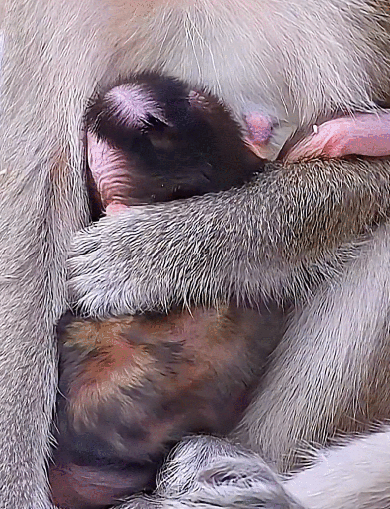 One of the cutest moments begins with a newborn monkey trying to open its eyes fully for the very first time. Its little face twitches as it tries to understand the new shapes and lights around it. Even the way it stretches its tiny fingers is enough to warm anyoneâs heart. The way it clings to its soft blanket, full of trust and curiosity, makes the scene truly precious.