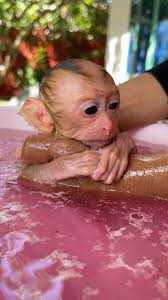 Baby TanTan’s shower time is one of those moments that instantly melts your heart. The tiny monkey, with soft fur and curious eyes, looks both surprised and fascinated as the warm water gently trickles over her little body. At first, TanTan clings tightly, unsure about what’s happening, her tiny fingers wrapping around for comfort. Every new sound and sensation makes her pause, blinking slowly as if trying to understand this strange but soothing experience.