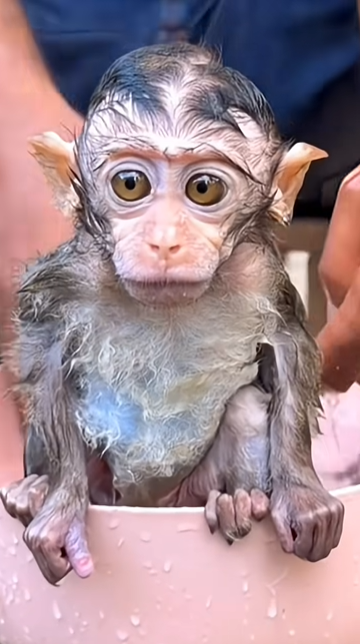 Mimiโs big, round eyes follow every movement around her. She watches closely as Cici softly rinses the last bits of soap from her arms and belly. The water feels nice, and Mimi relaxes her shoulders, letting out a small, tired sigh. Bath time is hard work for such a tiny monkey, especially after a long day of playing, climbing, and exploring.