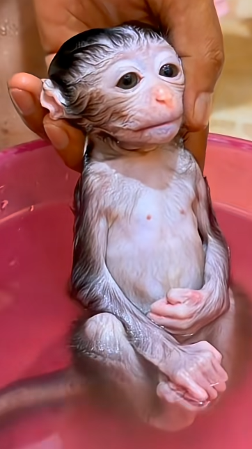 There are moments so gentle that they feel like a soft breath, and this was one of them. Baby Monkey Cici rested quietly in my hands as warm water flowed over her tiny body. From the very beginning, she showed no fear—only trust. Her small form fit perfectly in my palms, and she stayed completely calm, as if she knew she was safe 🥹🐒.