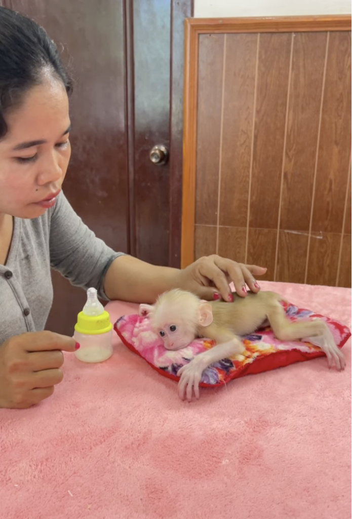 Sometimes baby monkeys, just like human babies, can feel lonely, confused, or tired. TanTan might be missing his mommy’s warm hugs or wishing for the comfort of familiar arms around him. His small hands hold onto his blanket, and he lets out quiet little sounds, hoping someone will notice and understand what he needs. Even though he cannot speak, his emotions show through every movement.