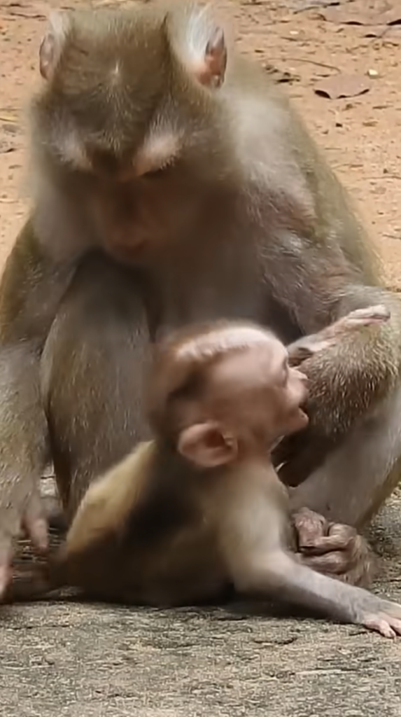 Unlike sad stories where baby monkeys are left alone, this video brings a message of hope. Mom doesn’t leave. She stays, protects, and reassures her baby that he is not alone. Every soft touch and gentle movement tells the baby monkey that he is loved and safe.