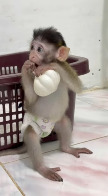 Baby Monkey Yumi clutched her tiny toy tightly, as if it were the most precious thing in her little world. Her fingers wrapped around it with surprising strength, and her eyes never left it for a second. To anyone watching, it might seem like just a small object—but to Yumi, it was comfort, safety, and familiarity all rolled into one.