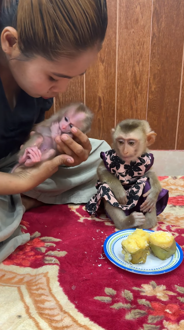 Watching Baby Sangha and Marry try palm cake is full of warmth and laughter. It’s not just about eating—it’s about learning, sharing, and enjoying something new together. Their reactions, from cautious bites to happy munching, make the moment unforgettable. Two tiny monkeys, one sweet palm cake, and a whole lot of cuteness 🐒🍰💛