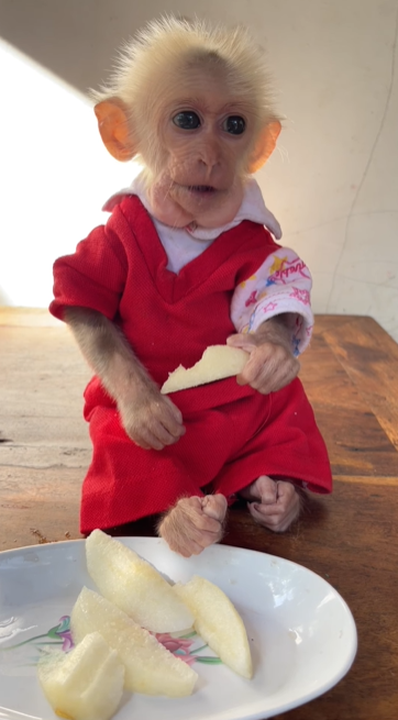 Baby TanTan like eat fruits, and this simple habit makes Monkey TanTan even more lovable every single day. Whenever fruits are placed near him, his little face lights up with excitement and curiosity. His bright eyes follow the colorful pieces closely, and his tiny hands reach out carefully, as if he knows something special is waiting just for him.
