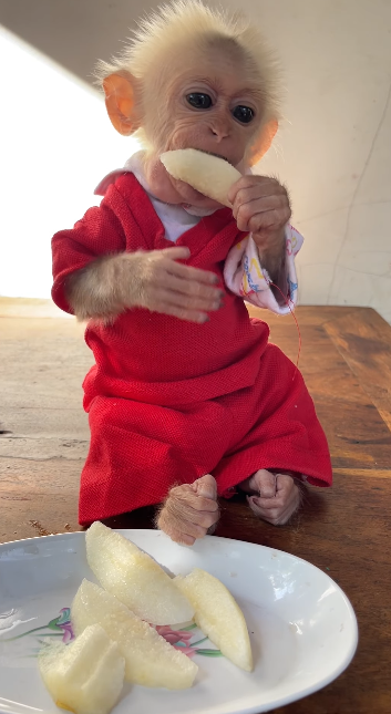 Baby TanTanโs love for fruits is simple, sweet, and heartwarming. Watching him enjoy every bite reminds everyone how little thingsโlike juicy fruitsโcan create so much happiness in the life of a playful baby monkey. ๐๐๐