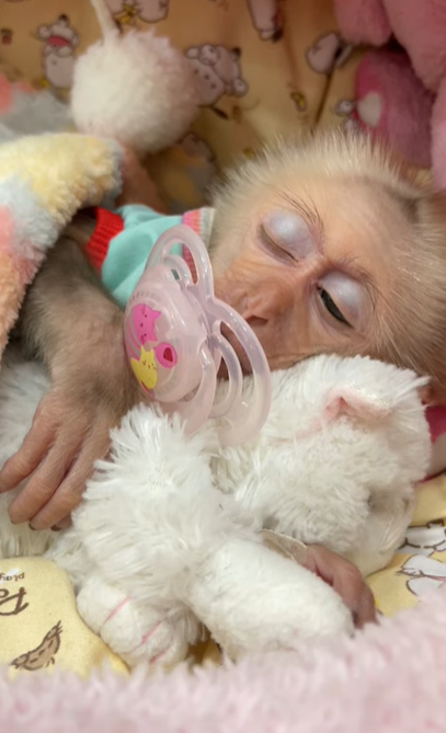 Baby TanTan sleeping is one of the most peaceful and heartwarming scenes you can ever witness. After a day full of curiosity, play, and gentle adventures, the little monkey finally drifts into a deep, cozy sleep. Her tiny body curls up naturally, as if she’s hugging herself for comfort, and her soft breathing creates a calm rhythm that fills the room with warmth.