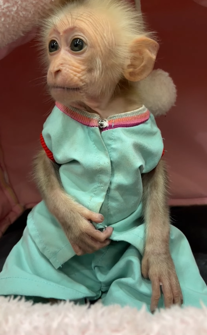 Her bright eyes are one of her most beautiful features. They seem to shine with curiosity and trust, reflecting the care and love around her. Every slow blink and gentle stare makes her look even more precious. Her soft fur, tiny hands, and small body all add to her delicate charm, making her look like a little miracle.