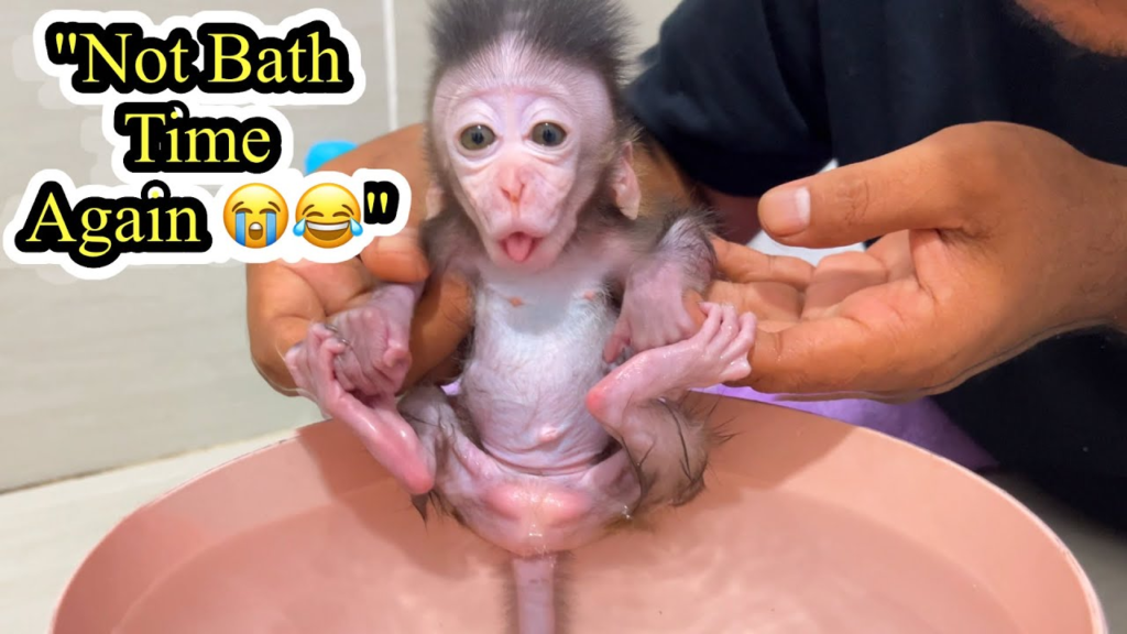 Baby Yumi in Lazy Bath Mode โ Too Cute to Handle! ๐๐๐ค โ Baby Monkey cici