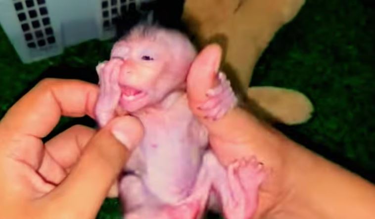 First, the caretaker carefully lifts the baby monkey and places it on a soft towel. The little monkey holds the caretaker’s finger and looks around with curious eyes. The caretaker gently checks the monkey’s body, looking at its hands, feet, eyes, and tummy. This examination helps make sure the baby monkey is growing well and does not have any injuries or sickness. The tiny monkey sometimes moves and makes small sounds as if it is talking.