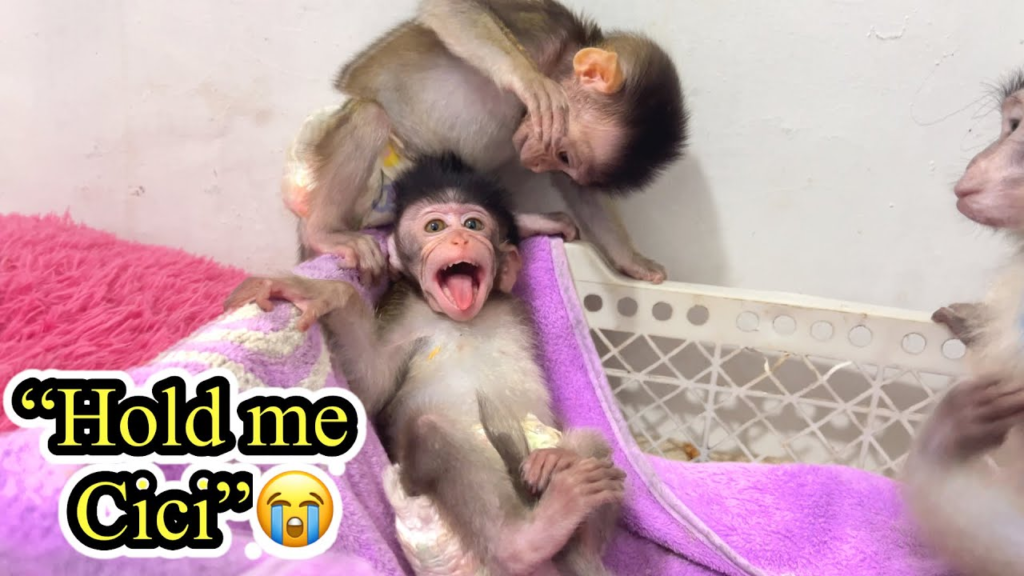 Cici, Baby Yumi Wants a Hug! Watch Their Adorable Sibling Moment! – Baby Monkey Cici