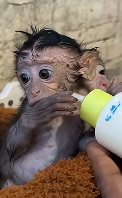 What happens next is nothing short of heart-melting. Cici carefully takes both bottles, one for Mimi and one for Yumi, adjusting her grip with surprising confidence. Her posture straightens, her expression turns serious, and suddenly she looks less like a playful baby monkey and more like a responsible big sister on an important mission. ๐ฅน She checks on both of them, glancing back and forth to make sure each tiny mouth finds the bottle just right.