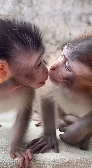 Cici’s kiss is full of gentleness. There’s no rush, no playfulness—just pure love. She stays nearby afterward, almost as if making sure Yumi feels safe and supported. This kind of behavior reflects a natural nurturing instinct, reminding everyone how strong emotional bonds can be among baby monkeys. 💖🐒