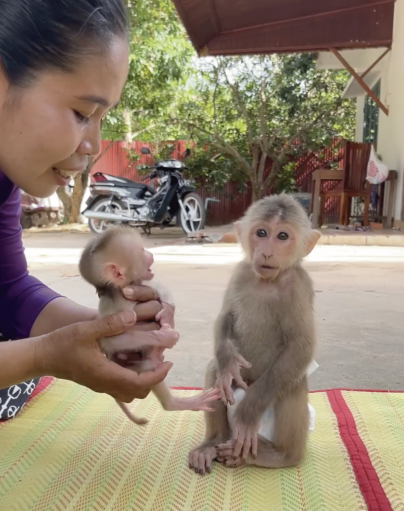 As the caretaker wrapped A Tong in a warm cloth, TanTan stayed right beside him. Whenever A Tong made a soft cry or tiny squeak, TanTan’s eyes widened, and he moved closer, trying to understand and comfort him. It was amazing to see how quickly A Tong bonded with TanTan. Even though he was only a newborn, he looked at TanTan with trust and admiration, as if TanTan was the first friend he ever knew.