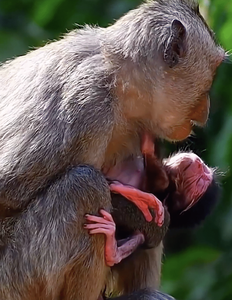 Each moment feels special and magical. Sometimes the baby monkey tries to climb small branches, wobbling a little but never giving up. Other times it jumps into its mother’s arms, cuddling closely as if seeking comfort and protection. These tender scenes remind us how deeply connected animal families are and how beautiful their relationships can be.