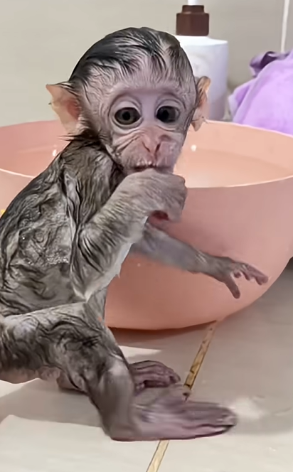 Evening bath time arrives just as the sky begins to dim, and once again, Baby Monkey Yumi senses what’s coming. 🐒🛁 The moment the routine starts, her little face changes. Those big, expressive eyes look up with a mix of curiosity and worry, as if she’s silently asking, “Is it really bath time already?” Yumi remembers past baths very well, and her emotions always arrive before the water does.