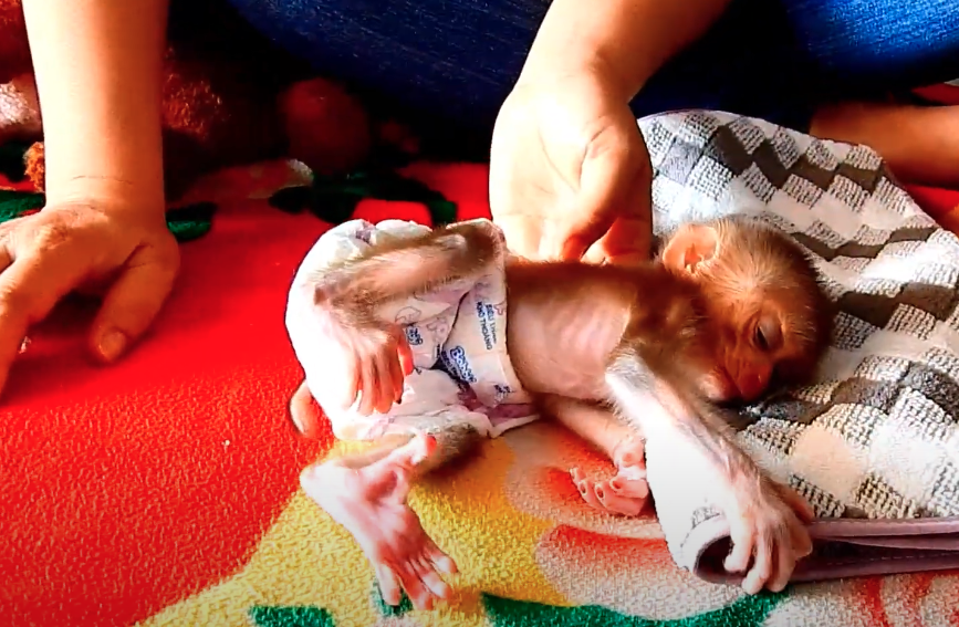 Fall in Love!! Newborn Monkey Dody Got Warm Hug by Mom Ask Him Sleep