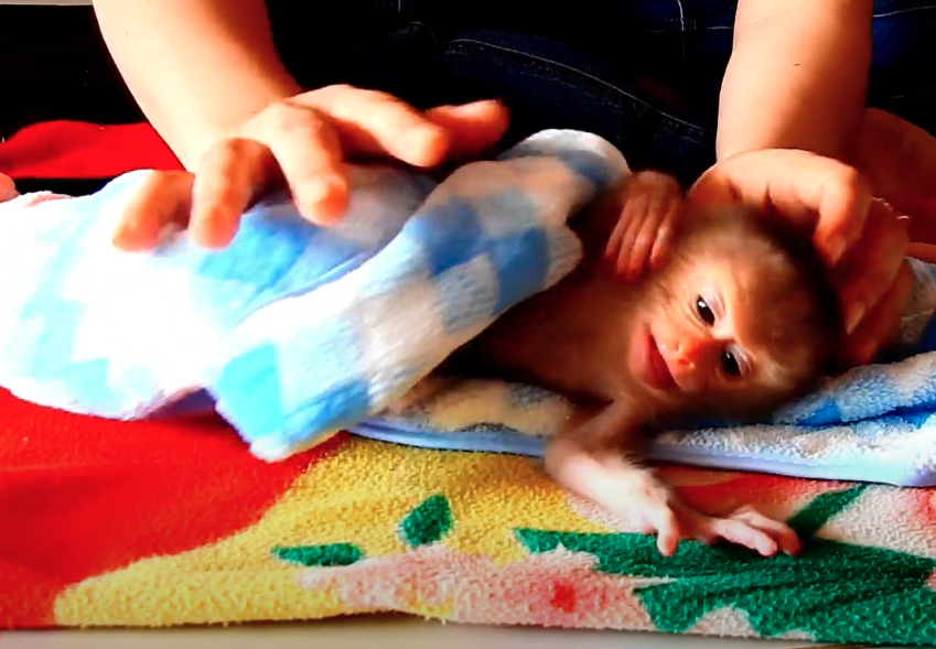 What a heart-touching moment! Newborn baby monkey Dody is receiving his very first diaper from his loving new mom. This special moment is full of love, care, and gentle tenderness. Dody is still so tiny and delicate, and his new mom knows exactly how to treat him—with the softest hands and the warmest heart.