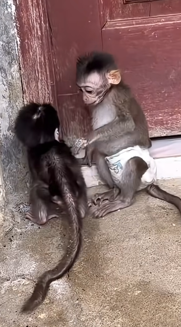 This small, funny interaction shows how emotionally aware baby monkeys can be. Mimi isn’t just playing—she’s comforting in her own unique way. And with Cici’s steady presence in the background, the moment becomes even more meaningful.