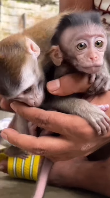 What makes this scene so touching is how natural it feels. Cici doesnโt force comfortโshe offers it. And Mimi doesnโt resistโshe accepts it fully. This gentle interaction shows how emotional care is just as important as physical care for a baby monkey. Love, patience, and understanding create a safe space where fear and discomfort quickly disappear.
