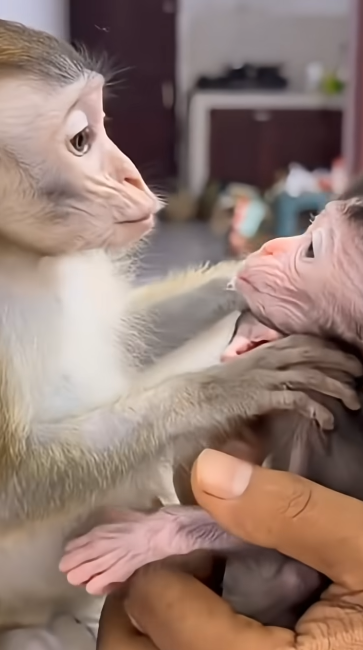Watching Baby Monkey Cici respond to the newborn is a powerful reminder of how strong maternal instincts can be. Her quiet protection, gentle awareness, and immediate concern show a heart ready to nurture. In that moment, it became clear—love and care don’t need to be taught; sometimes they simply awaken when they’re needed most 🐒🤍.
