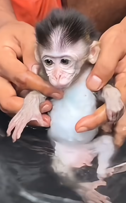 Bath time with Yumi is never just about getting clean—it’s a full emotional performance, and today the star of the show was her intense, unblinking focus. The moment I picked up her tiny hands and dipped them into the warm water, Yumi froze. Her playful wiggles stopped, her shoulders relaxed, and her eyes locked onto mine with a seriousness that felt far too big for such a small monkey.