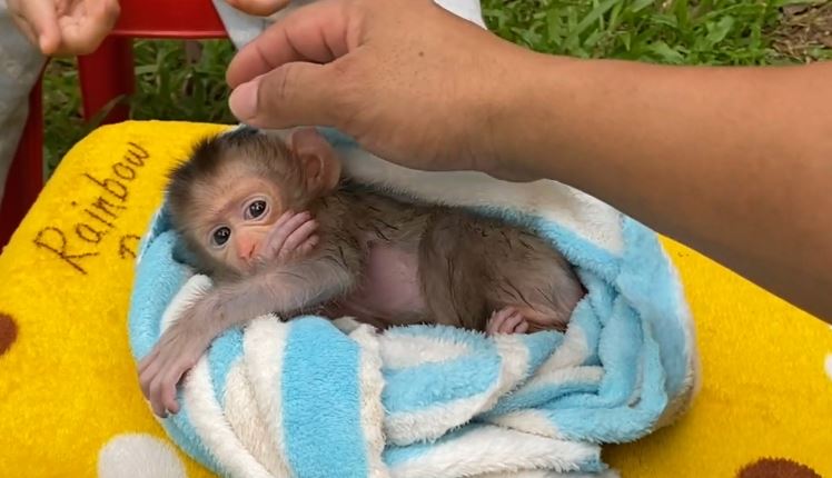 The puppy monkey feels so relaxed during the bath. It splashes a little, enjoying the warm water, while mum patiently continues to care for it. She uses a soft cloth to clean its tiny body, speaking gently as if sharing love through every word. The bond between them becomes even stronger in these quiet, loving moments.