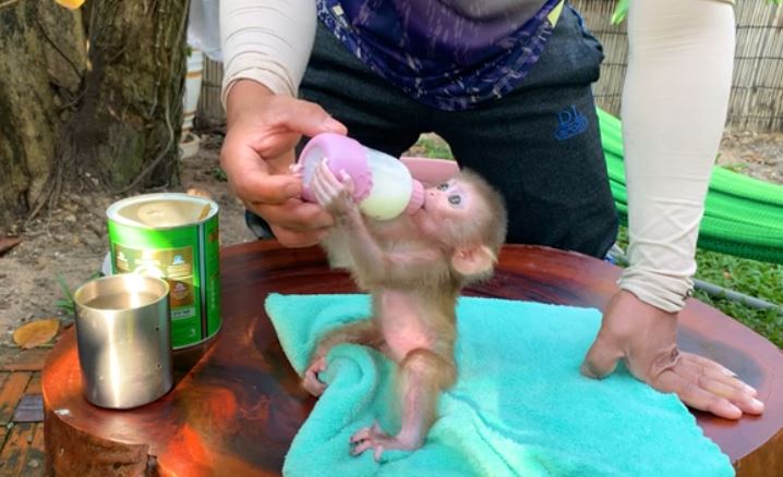 Little Puppy Monkey was feeling warm and cozy after she finished drinking her delicious koko milk. Her tiny hands gently held the bottle as she slowly drifted into a calm and happy mood. The sweet taste of milk made her tummy full, and she gave a soft little smile that showed how much she enjoyed it. But after drinking, she started to feel a little uncomfortable.