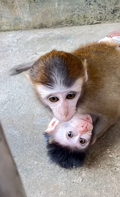 In the end, Yumi’s tears are completely gone, replaced by calm and comfort. Mama Cici stays right there, holding her close, proving once again that a mother’s love is the fastest comfort of all. 💖🐒