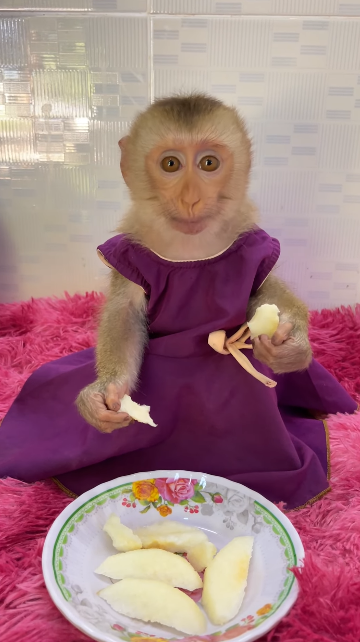 Monkey TanTan loves seeing Marry enjoy her fruits. Whether itโ€™s a sweet banana, a juicy orange, or a plump grape, Marry eats slowly and gently, savoring every bite. Sometimes juice drips from the fruit, but she doesnโ€™t mind at all. Instead, she continues munching happily, fully immersed in the simple joy of tasting something delicious.