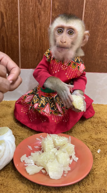 Marry sits quietly for a while longer, enjoying the peaceful feeling after her meal. With a happy heart and a sweet smile, she waits for the next little adventure, already dreaming about eating oranges again very soon 🍊💛🐒