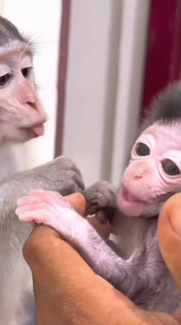 Nearby, the other baby monkeys paused to watch, recognizing the special connection between Cici and Luci. Even in a world full of playful chaos, this quiet, tender moment stood out. It was a lesson in patience, understanding, and the unique ways love can be communicated between two souls—even if one of them is a tiny, mischievous monkey.