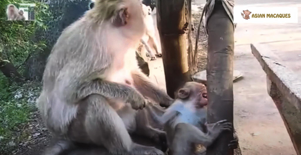 Suddenly, the baby monkey grabbed a piece of fruit that didn’t belong to him—something the dominant monkeys were eating. Within seconds, chaos broke out. The older monkeys became upset, and the baby quickly ran back to his mother for safety. However, instead of comforting him, the mother monkey was furious. She knew her child had gone too far and that his behavior could bring danger to both of them.