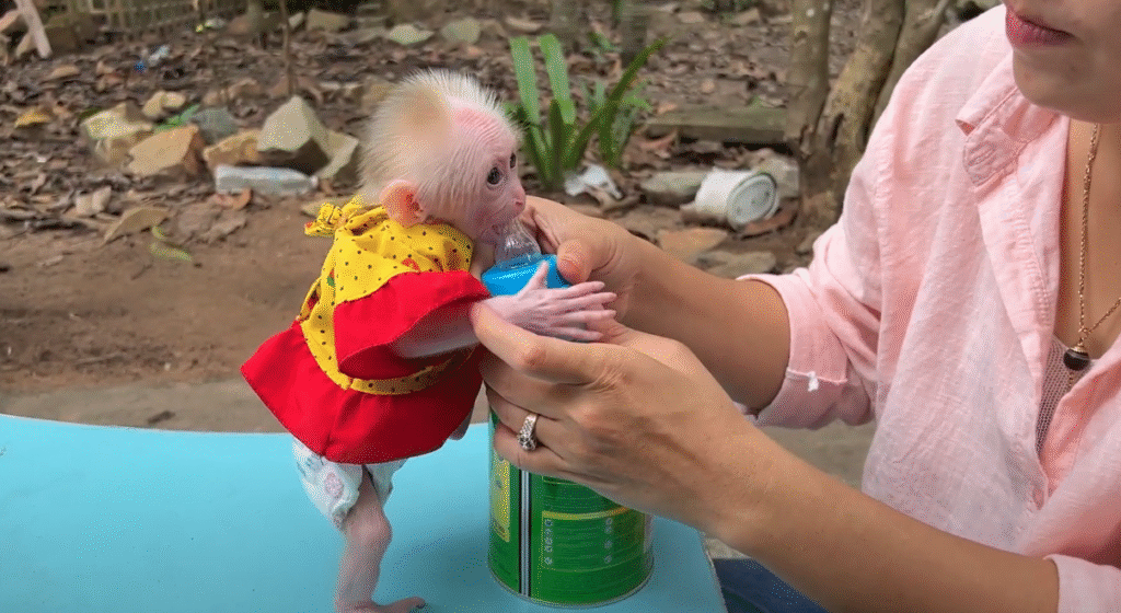 The scene ended with peace—the angry cries replaced by quiet sipping. This little moment showed how quickly moods can change in baby monkeys: from nasty tantrums to sweet cuddles. For ChiChi, milk was not just food—it was comfort, love, and the bond that always brought him back to his mother’s heart.