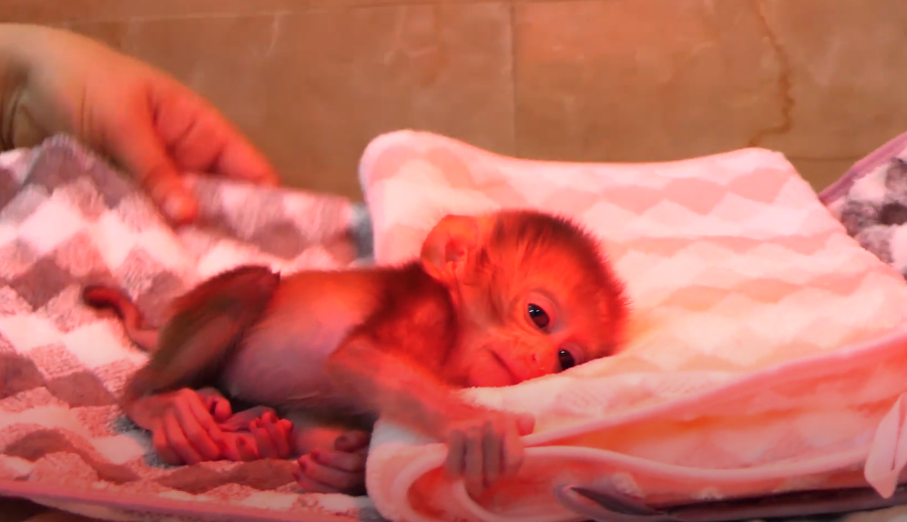 Newborn Baby Monkey Dody Get Heater Two Time For Warm Up His Body