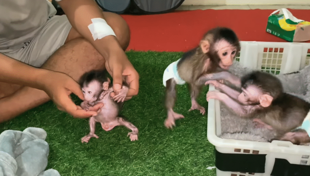 Sweet little Loui, the newborn baby monkey, was resting peacefully in his cozy nest. His tiny body was still so fragile, his fur soft like silk, and his innocent eyes closed tightly as he enjoyed a calm nap. However, this peace did not last long because mischievous Baby Monkey Big Willy suddenly came to play near Loui. Willy is older, stronger, and full of energy — always curious and playful. But sometimes, he doesn’t realize that little Loui still needs gentle care and quiet time.