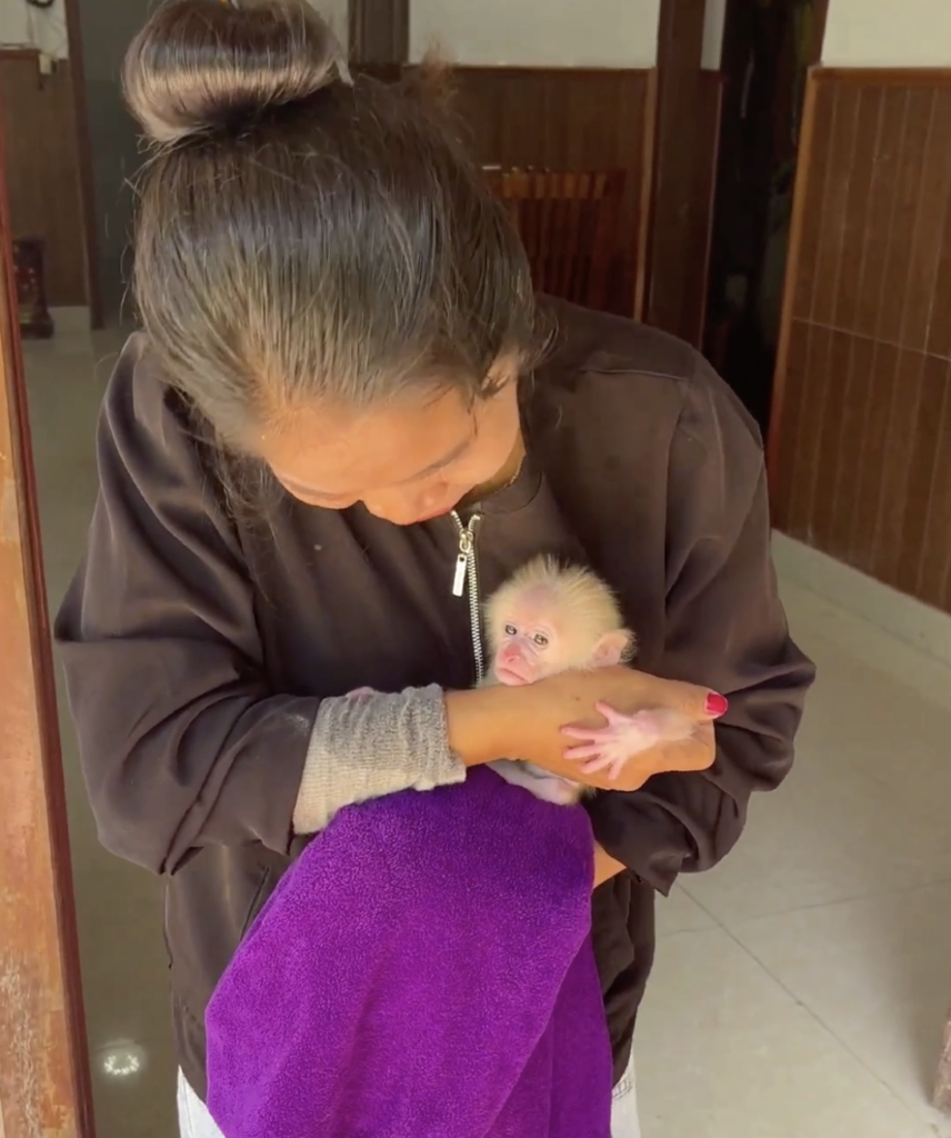 Around them, everything feels soft, calm, and peaceful. The sound of gentle feeding, tiny movements, and soft breathing fills the space with warmth. The banana not only brings sweetness to Tantan’s mouth but also brings strength and energy to the little body.