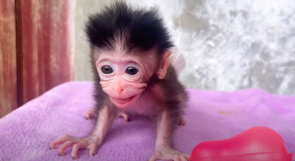 The night was quiet, except for the soft, pitiful cries of a tiny baby monkey. Her little voice trembled in the dark, a sound that carried both sadness and exhaustion. She rubbed her sleepy eyes with her tiny hands, yawning again and again, but she couldn’t fall asleep. Without her mother’s warmth, the world felt too big, too cold, too lonely. Every sound startled her. Every shadow made her shiver. She just wanted someone to hold her close — to feel safe enough to drift into dreams.