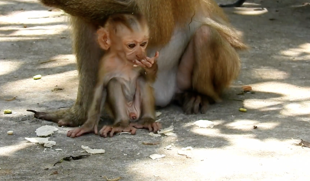Other monkeys nearby began to notice. A caring adult soon climbed down carefully to check on him. With gentle touches and soft sounds, they comforted baby Niko, helping him feel safe once more. The warmth of that presence slowly melted away his fear.