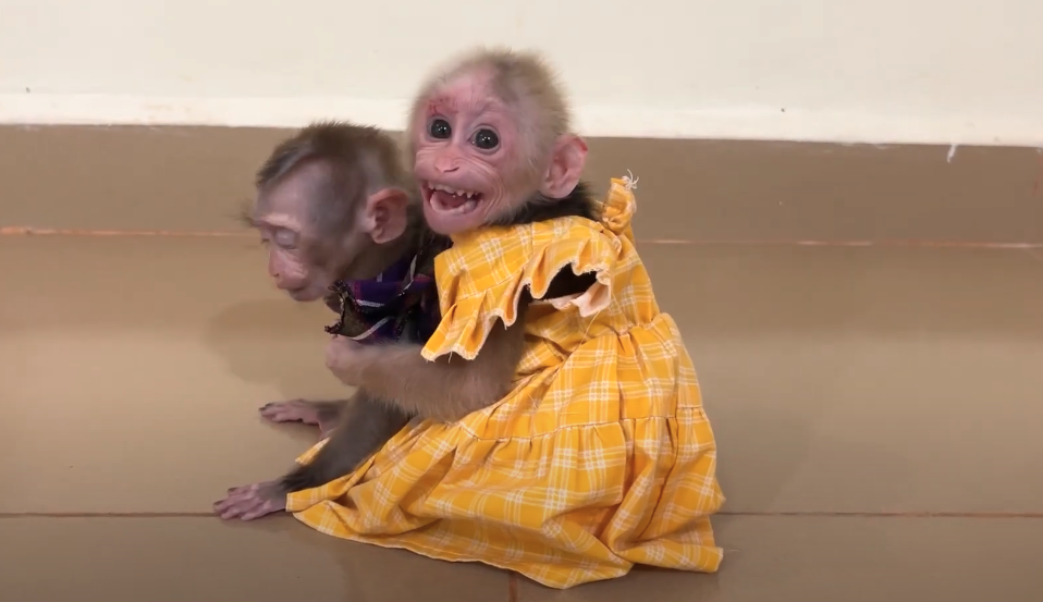 Little Linda was sitting quietly when suddenly the atmosphere around her shifted into chaos. The innocent baby monkey, who had only wanted a moment of calm, found herself in tears as her loud cries filled the place. Her sobbing was not without reason—her sister, Chichi, had turned unexpectedly angry and in her frustration bit Linda’s tiny hand. It was a heartbreaking moment that showed the fragile world of sibling rivalry among monkeys.