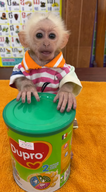 Finally, he set the cup down carefully beside him and leaned back, still hugging it lightly. His little heart was calm, and a warm sense of contentment filled him. In this simple, quiet moment, Baby TanTan found joy, comfort, and peace—just a baby, his milk, and the love that surrounded him. 🍼🐒💛