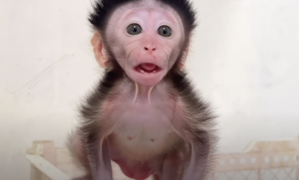 Separated from her mom far too early, this baby monkey has had to face a world she doesn’t yet understand. Her small body shivered not just from the bathwater but from the emptiness of longing. She cried, as if calling into the air, hoping her mother would hear her, hoping someone would answer that call. The cries pierced hearts, making it impossible not to imagine the pain she was carrying.