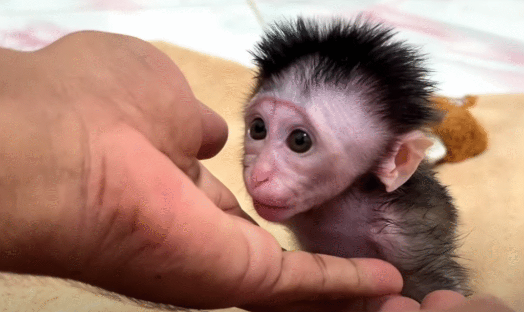 Baby monkey Cici is one of those little souls who instantly captures attention the moment you see her. With her big, round eyes full of innocence and her tiny body clinging tightly to anyone who gives her comfort, Cici shows us just how deeply a newborn longs for love and safety. All she truly wants is to be held forever, close to a warm chest where she feels secure.