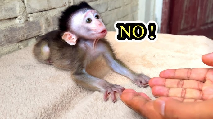 Today, Baby Monkey Cici was in one of her stubborn moods. I gently approached her with a little task — something simple, like helping with a small bath or picking up her toy — but she had other plans. She looked at me with those big round eyes and, without a moment’s hesitation, gave me the tiniest, most dramatic “no” I’ve ever seen.