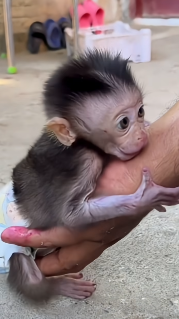 Baby Monkey Cici had clearly been having too much fun. By the time I noticed her again, her tiny hands, feet, and soft fur were covered in dirt. Little smudges marked her face, and her once-clean body told the full story of a busy, playful day. She looked messy from head to toe—but somehow, that only made her even cuter. 😭🐒💗