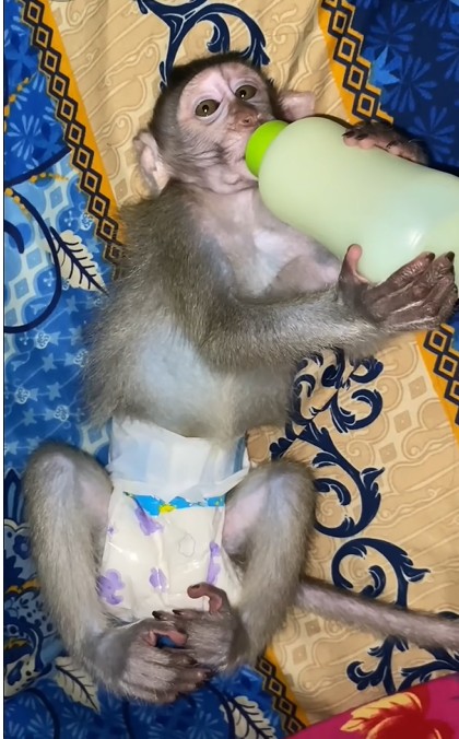 It is in this simple, tender moment—milk in its mouth, dreams in its eyes—that the sleepy monkey melts every heart around it.