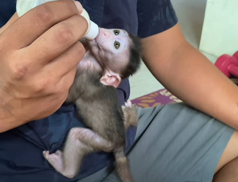 Little baby monkey Kimmy sat quietly in the corner of the shelter, her tiny eyes full of sadness and confusion. She was still learning to understand the world, everything around her seemed so big and unfamiliar. Her soft fur glowed in the morning sunlight, but her heart was filled with longing — she missed the warmth of her mother’s arms.