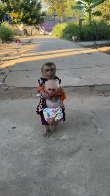 As they stepped out, Baby TanTan clung lightly to Marry, still feeling comforted by her presence. The grass beneath their feet, the soft rustle of leaves, and the gentle sunlight all added to the excitement. But what made TanTan truly brave and curious was knowing that Marry’s hug had given him confidenceβ€”he could explore while feeling safe. πŸ’πŸŒž