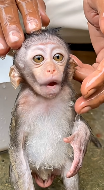As I slowly washed her, Mimi leaned back slightly, enjoying the warmth. She closed her eyes for a moment, looking almost sleepy, as if the stress of the day was melting away. 🥰🐒 This was such a contrast to the frightened baby who once clung tightly, unsure of every touch. Now, she allowed herself to relax completely, showing just how far she’s come.