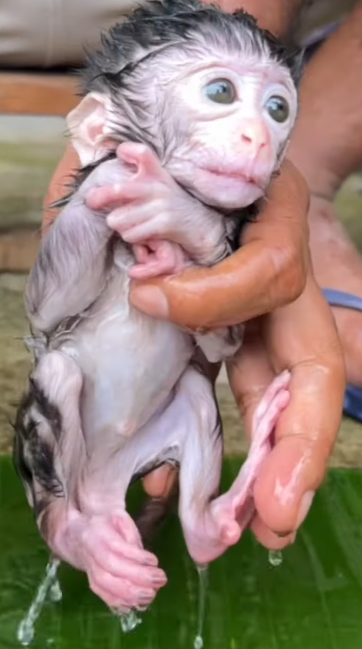 So tiny and fragile, this newborn baby monkey experiences one of her first gentle baths, a moment filled with care and quiet trust. ๐๐ Baby Monkey Cici is still learning about the world, and everything around her feels newโthe sounds, the touch of water, and the loving hands that keep her safe.